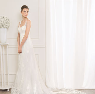 A Rosa Clará é conhecida pelos vestidos de noiva clássicos, com saias volumosas e aplicações de renda,que são o DNA da estilista espanhola
